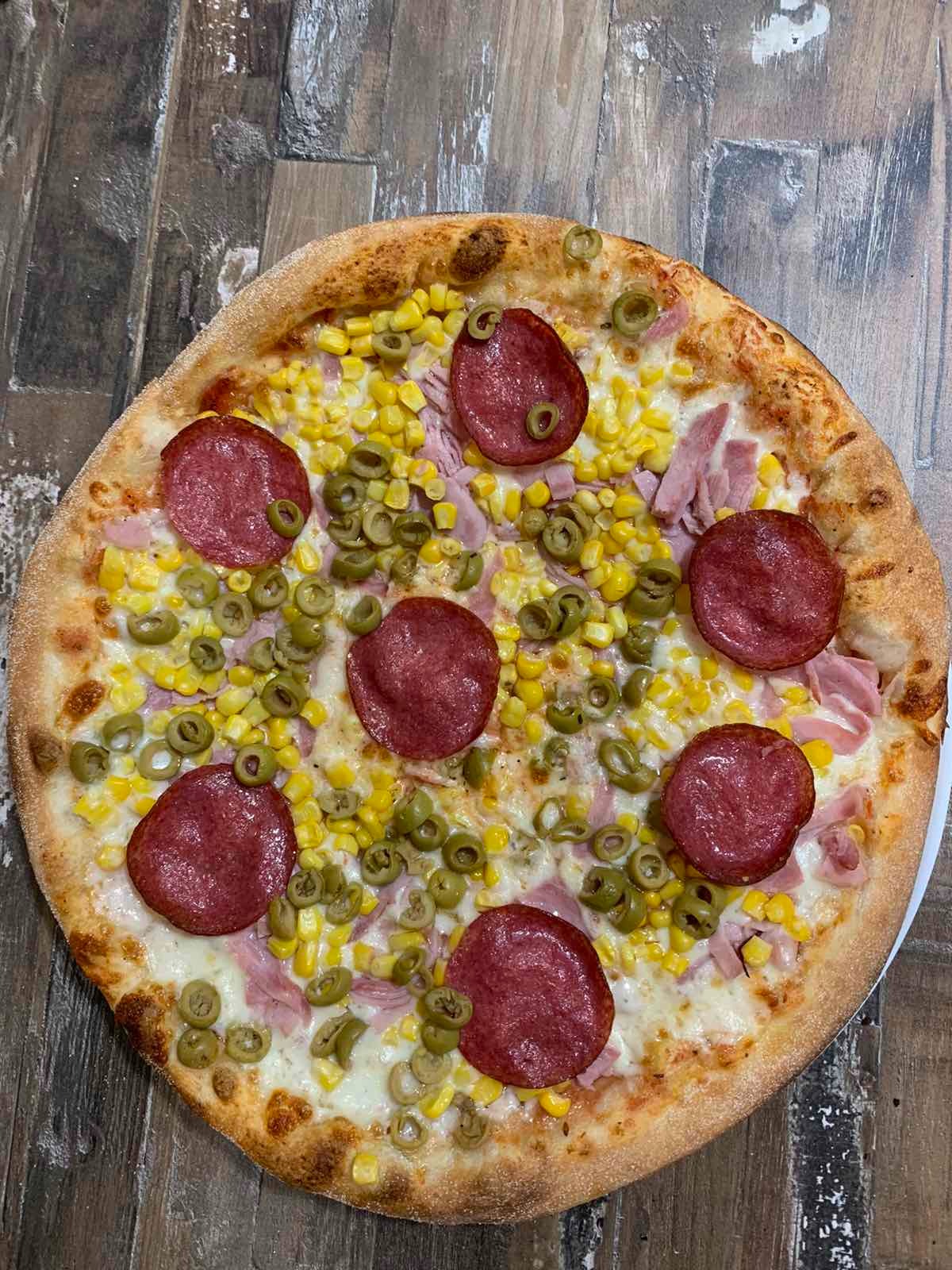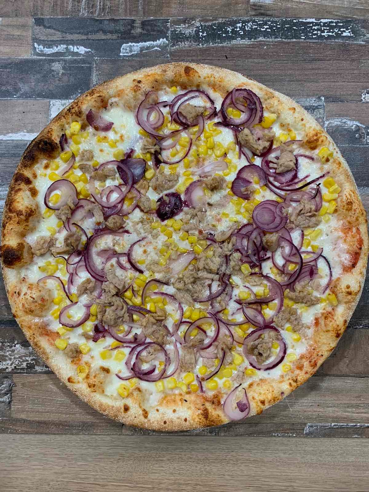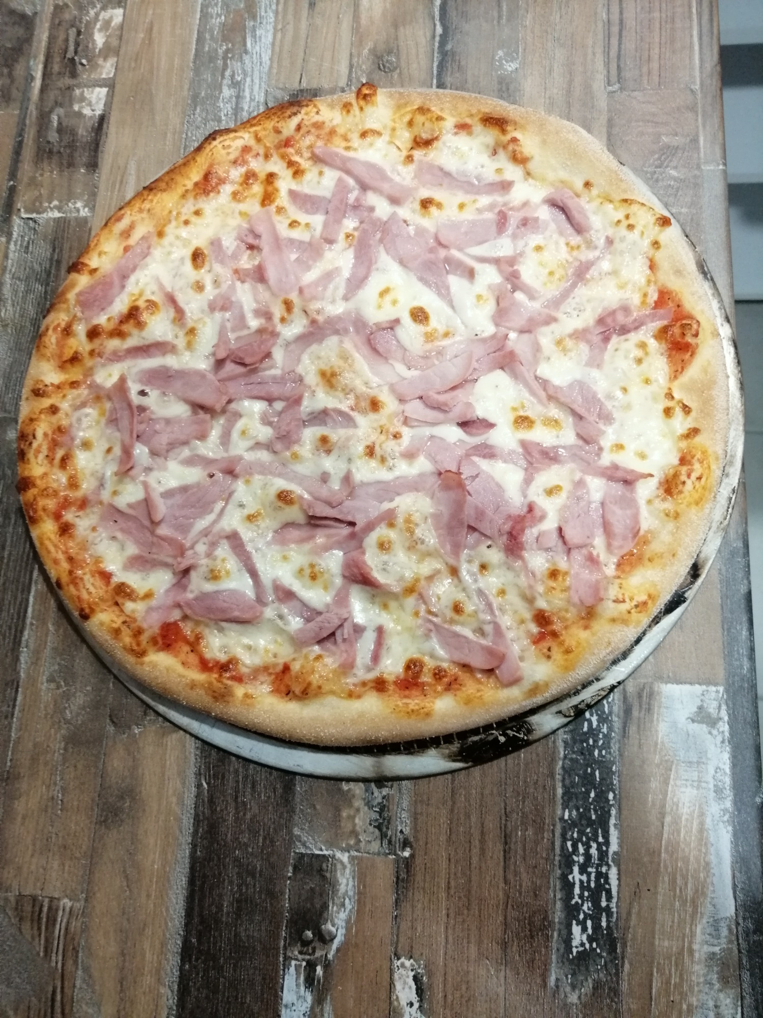 smotanový základ, mozzarella, kuracie mäso, šunka, kukurica, niva, cibuľa -